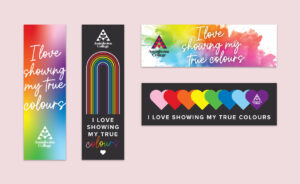 I had the pleasure of working on the project, refreshing the visual direction of Assiniboine Pride, and redesigning promotional materials such as posters, bookmarks, an email signature, a Zoom background, pronoun pins, and “love notes” that were all distributed as part of Assiniboine’s presence at Brandon Pride.
